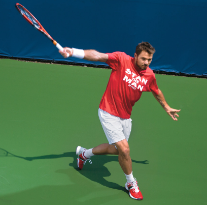 La main libre permet de libérer de toute contrainte le bras directeur. Son rôle intervient dans la prise d’élan et le soutien de la raquette.